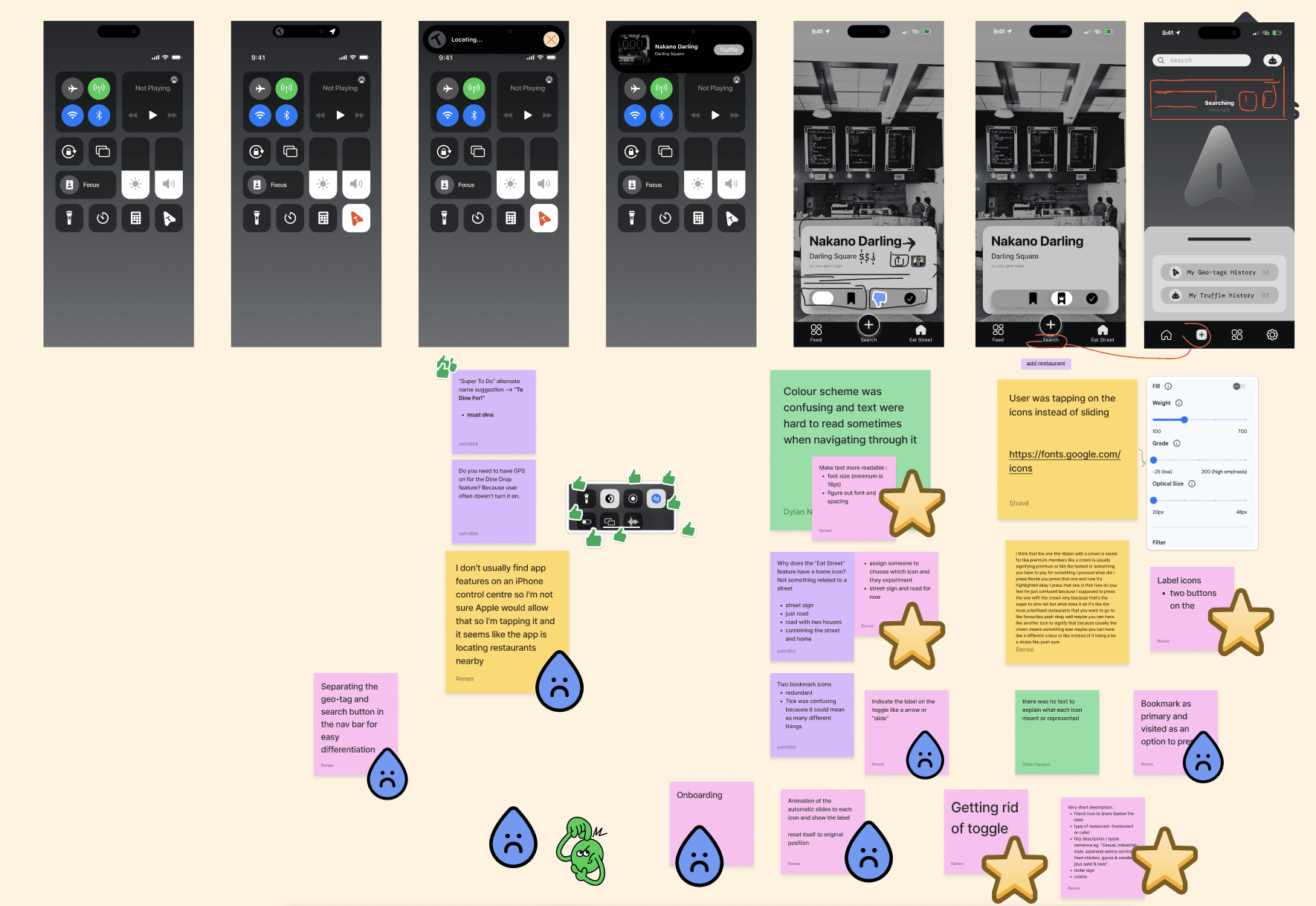 We tested our prototypes through 5 think aloud sessions, guiding users through key flows like capturing a restaurant with Dine Drop, organising it into folders, and revisiting it later. This allowed us to observe how users navigated the experience in real time, where they hesitated, and what broke down.